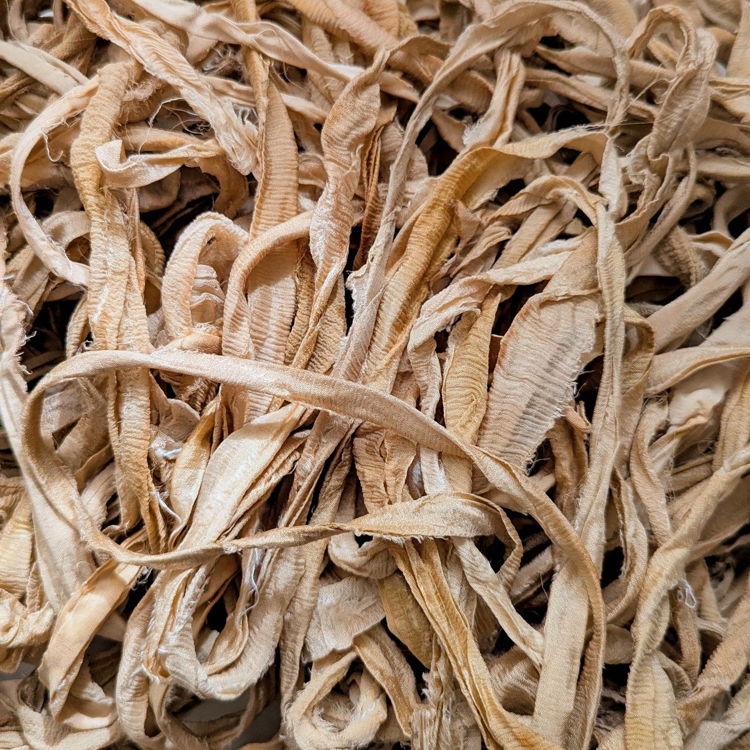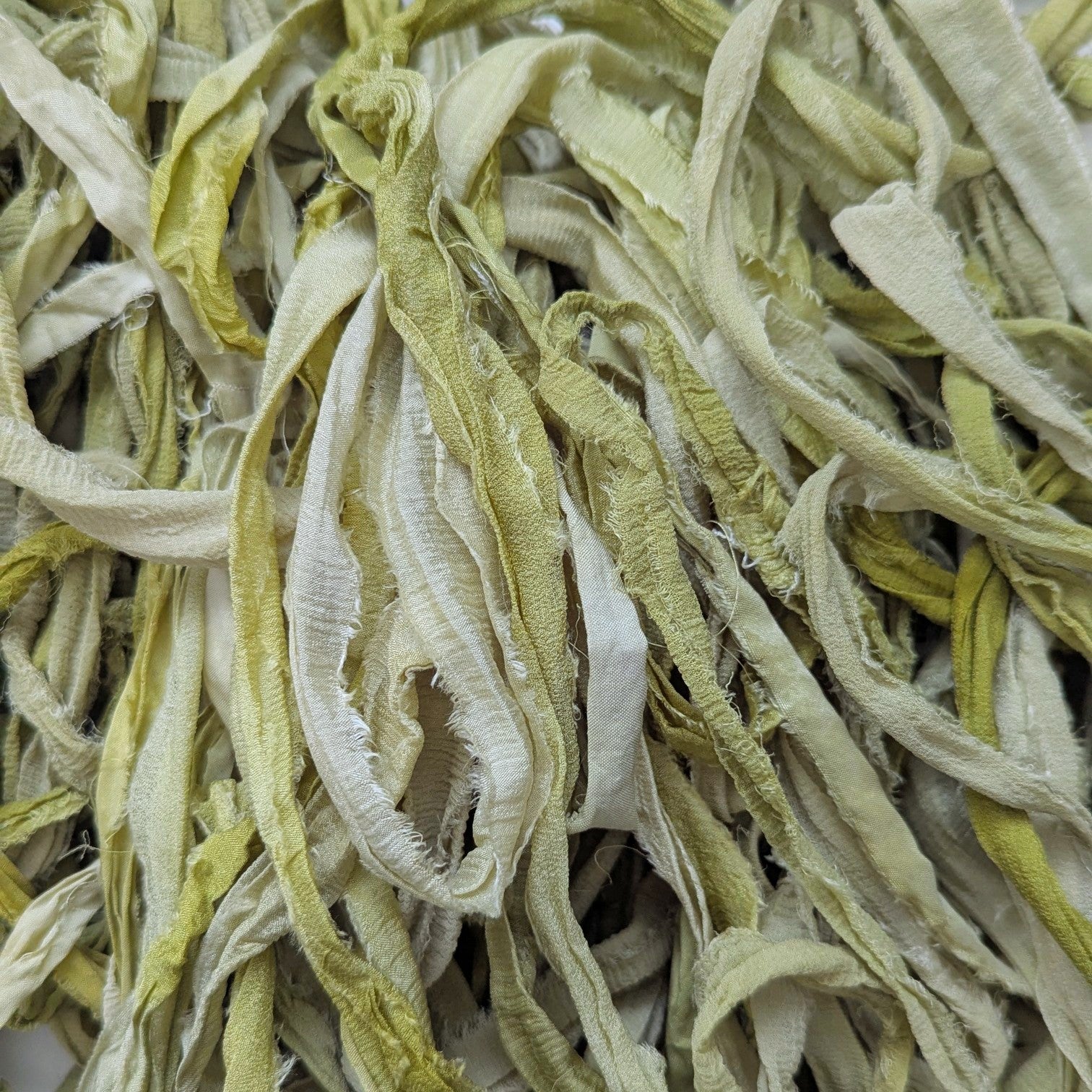 Please note: This ribbon is made from recycled silk chiffon fibers and pieces are joined by stitches or knots.