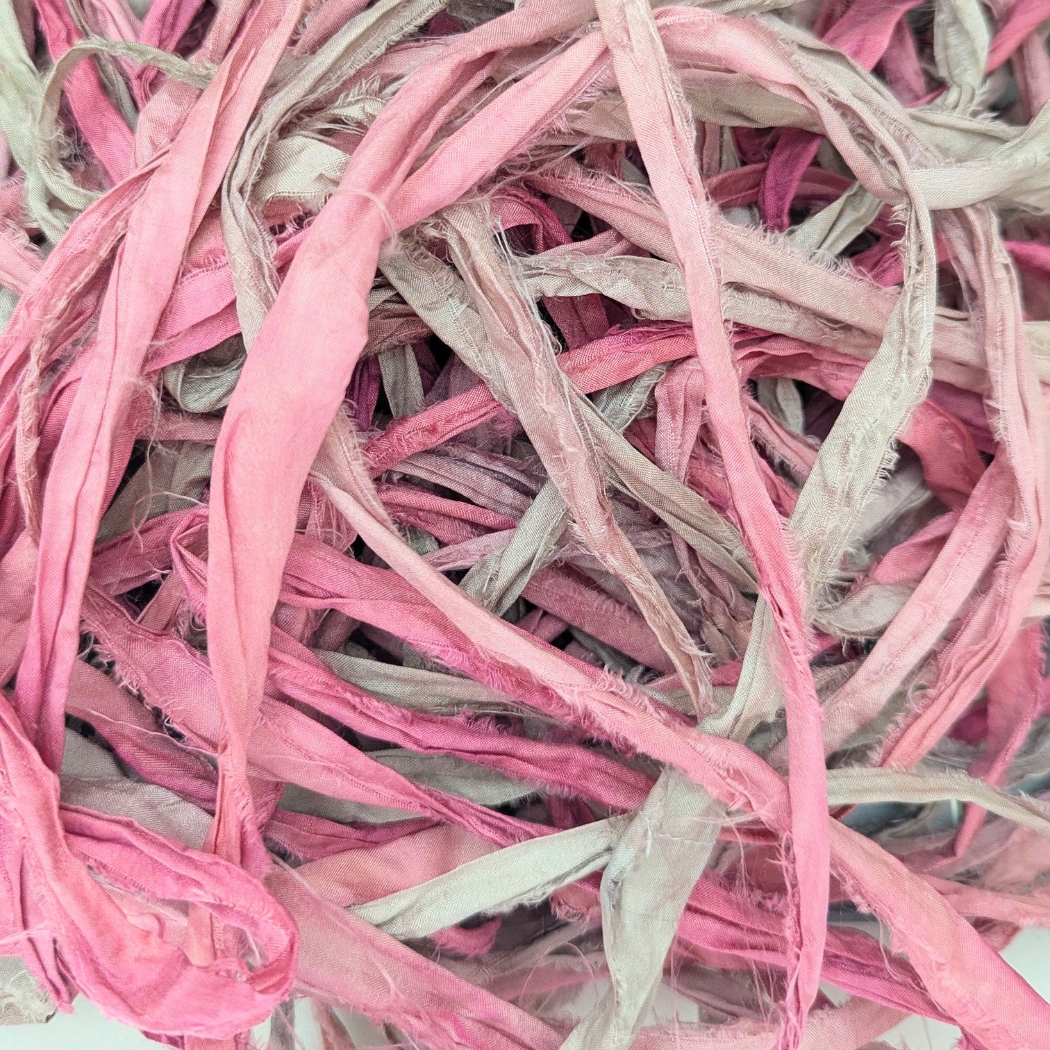 This hand dyed sari silk ribbon is made from recycled sari fabric, giving new life to materials that would otherwise go to waste. Each skein of ribbon is dyed in small batches, so every bundle has its own character with subtle color shifts and a naturally soft, textured finish.