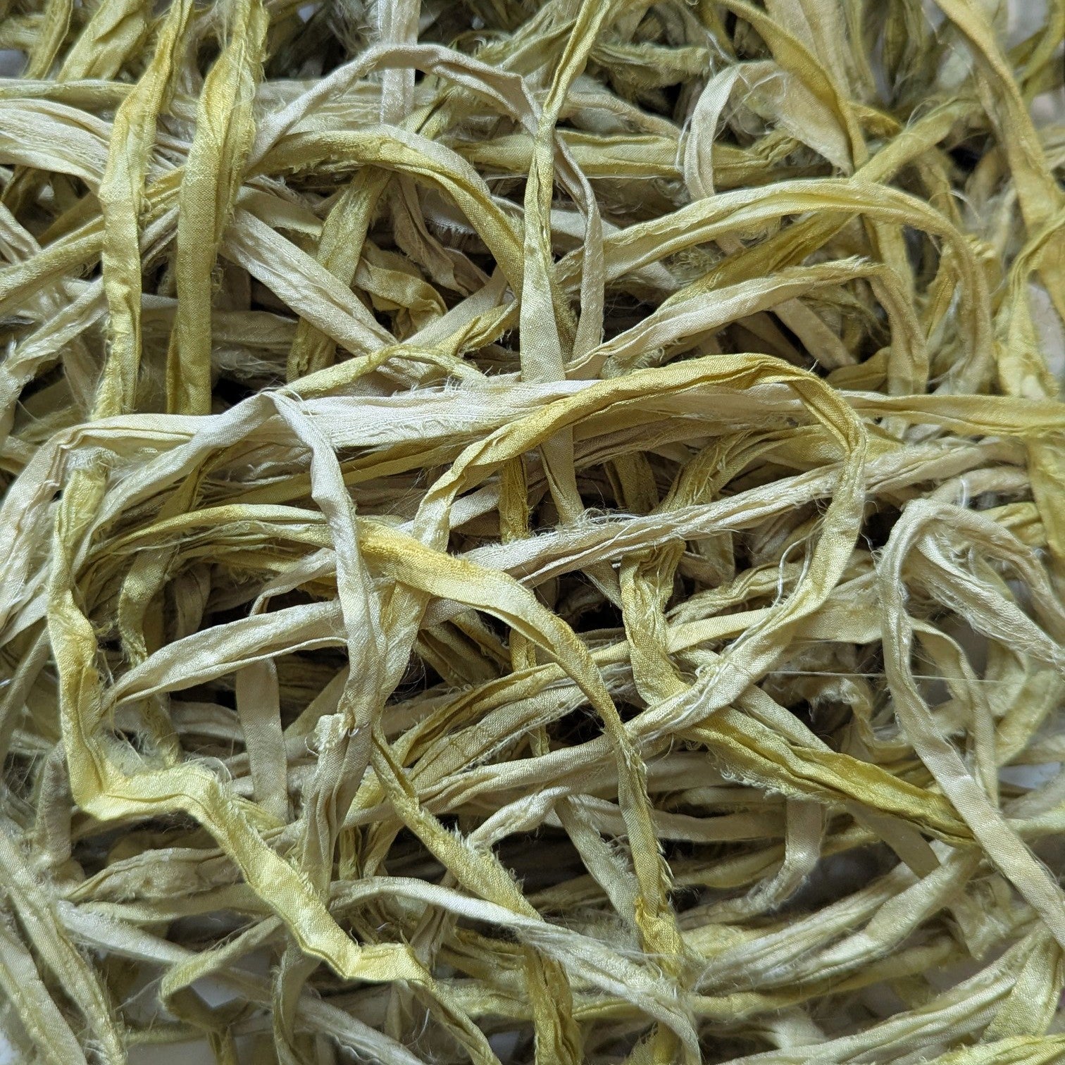 Please note: This ribbon is made from recycled sari silk fibers and pieces are joined by stitches or knots.
